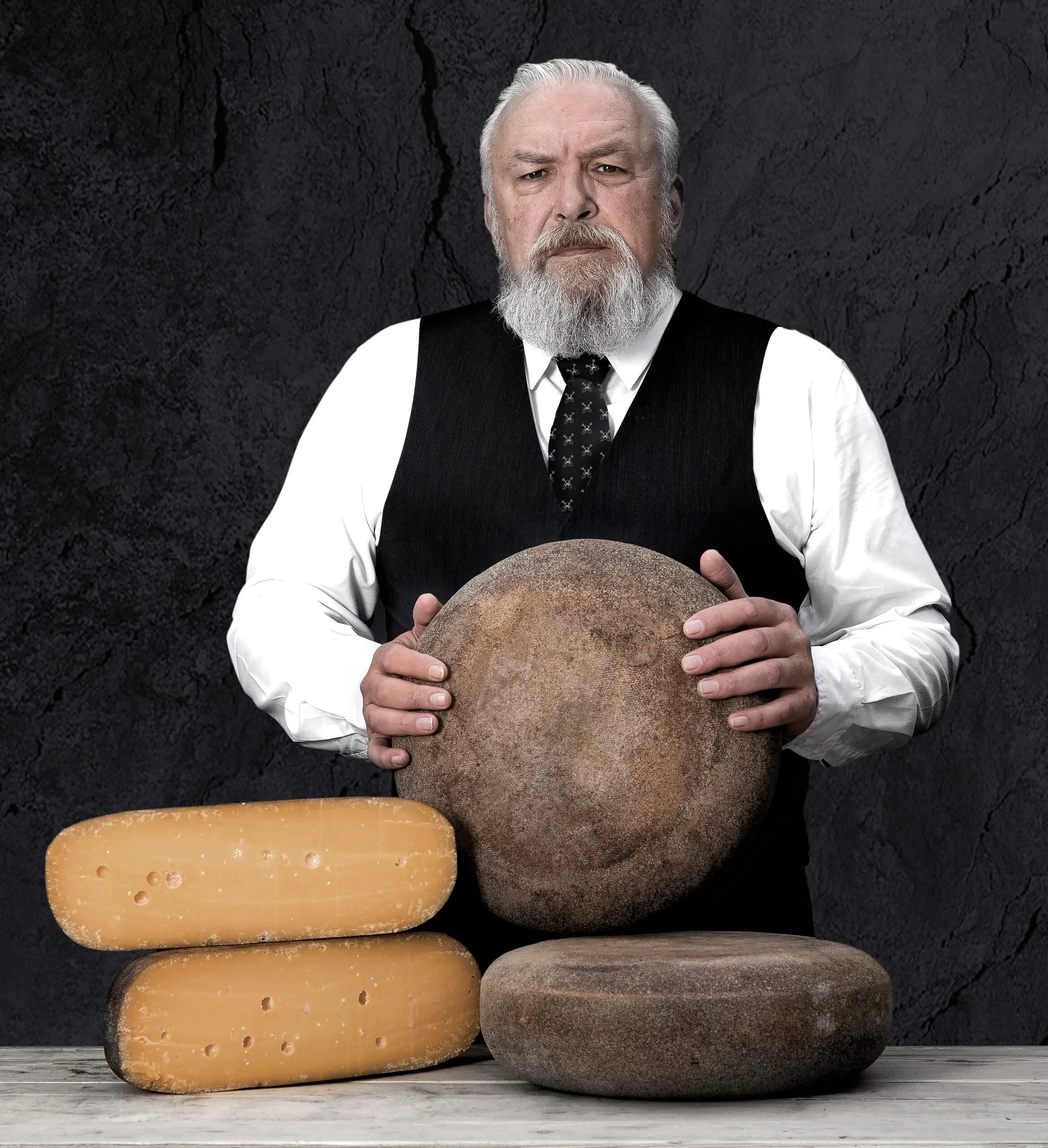 At Global cheese Boutique, we are dedicated to preserving traditional cheese-making techniques. The name Eminence Grise, which refers to ancient wisdom and experience, reflects this commitment, as the cheese is treated with the same care and respect as in former times. Each wheel of cheese is coated with a thin layer of caramel to prevent mold formation on the rind, giving it a striking grey-brown appearance. This careful handling ensures that the cheese develops its unique flavor profile during the aging process.